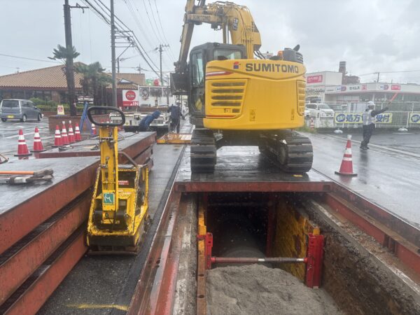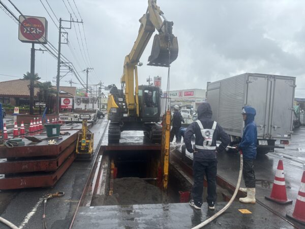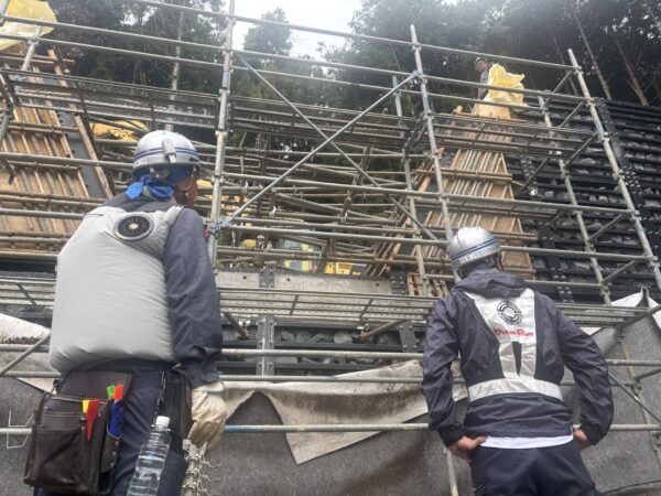 雨天での梅雨特有の蒸し暑さの中での作業でした。